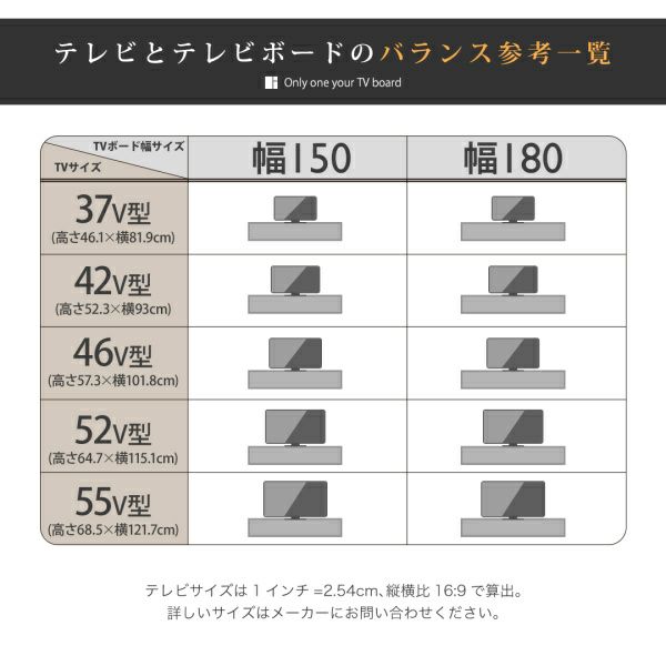 幅150 幅180 テレビとテレビボードのバランス参考一覧