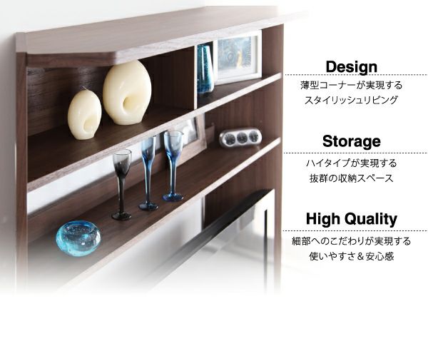 さらに、薄型でも収納スペースを十分に完備しているので、DVDやデッキ、ゲーム機などの収納にも優れています。