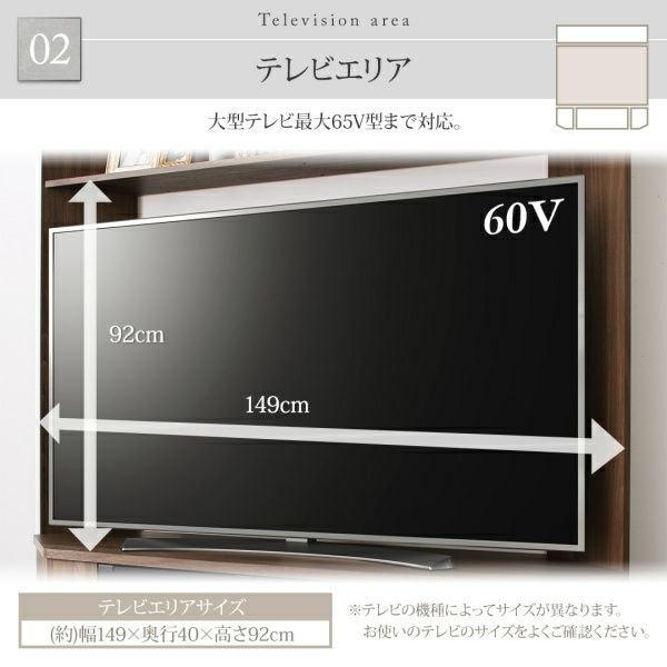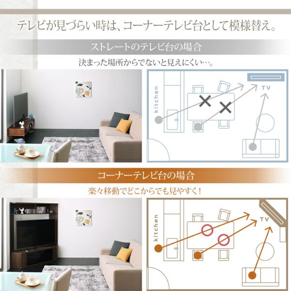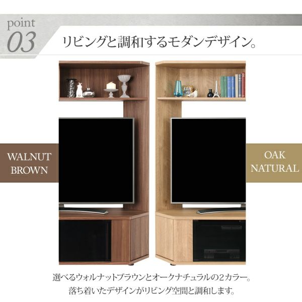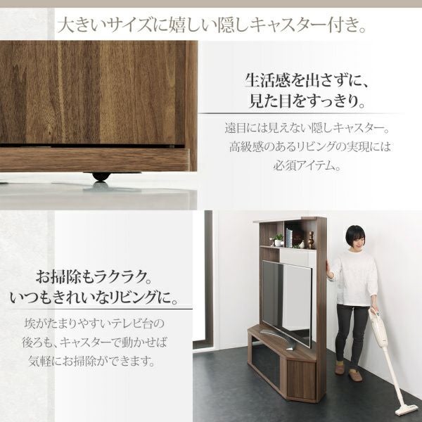 テレビ上部の無駄な空間を有効活用。奥行40cmで圧迫感もありません。上部の棚以外にも、デッキエリアや下部の両サイドにはA4サイズが入る収納を完備。コーナーテレビボードとしてもお使い頂けます。
