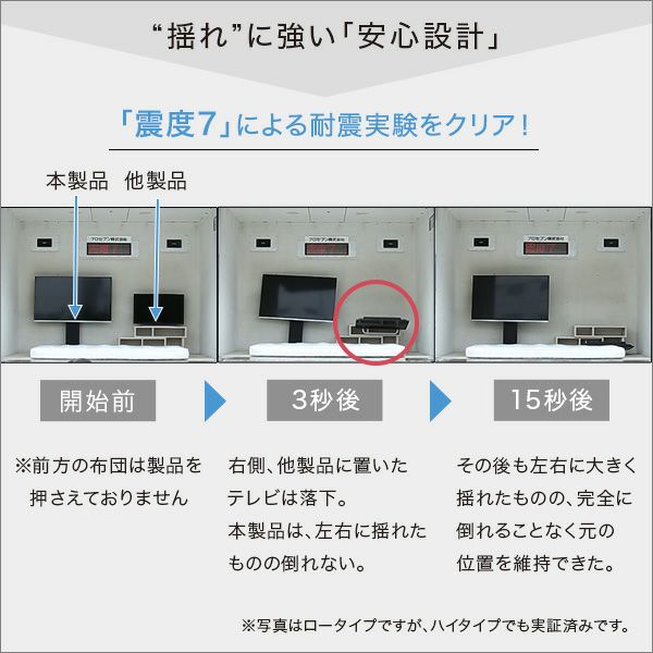 ご家庭だけでなく、会社の会議やプレゼンテーション用としてもお使い頂けます。震度7の耐震試験をクリアした安心設計です!