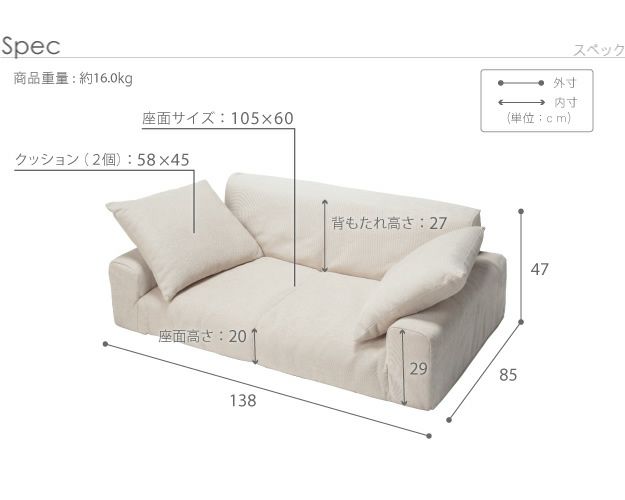 他の画像を見る ネイビー アイボリー ライトグレー ダークグレー ブラウン 広々座面の2人掛けごろ寝ソファー 【Bright】ブライト [搬入・設置付き] 詳細を見る お気に入りに登録する 当店特別価格 ¥ 59,800 税込