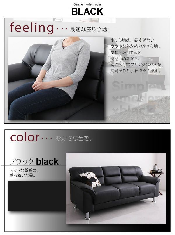 シンプルモダンソファー 【BLACK】ブラック 2P
