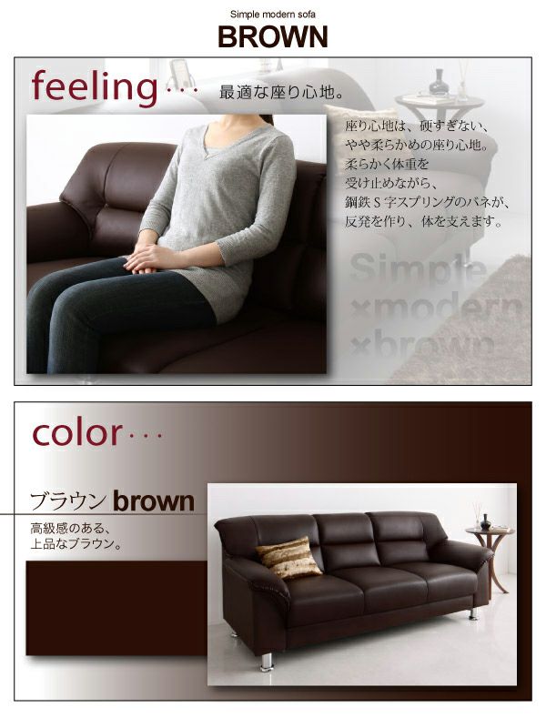 シンプルモダンソファー 【BROWN】ブラウン