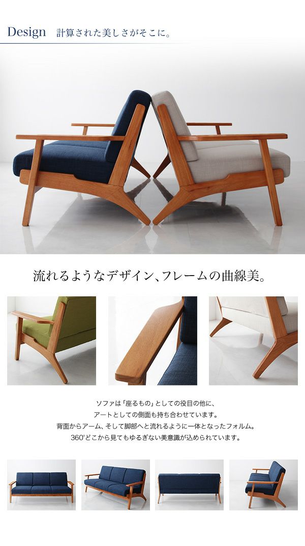 やさしさ感じる上質デザイン。北欧デザイン木肘ソファー