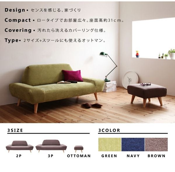 カバーリングモダンデザインローソファー 【ORGA】オルガ 2P