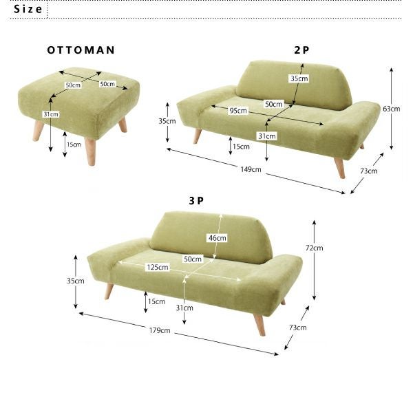 オルガは下記の3タイプをご用意!ソファ+オットマンで寛げる癒しの空間に。また、それぞれを色違いで合わせる事でより一層お部屋のインパクトになります♪
