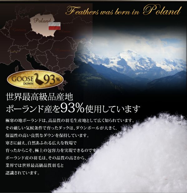 他の画像を見る アイボリー ブラック ブラウン ポーランド産グースダウン93%プレミアムゴールドラベル羽毛布団8点セット 【Lathyrus】ラティルス 在庫切れ 詳細を見る お気に入りに登録する 当店特別価格 ¥ 80,800 税込 〜 当店特別価格 ¥ 税込